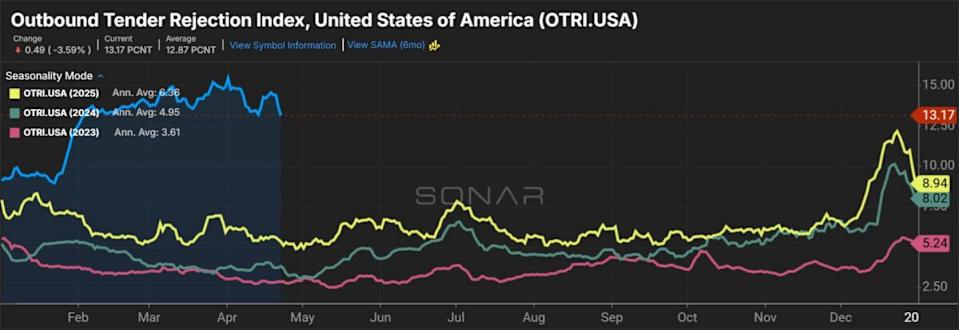 Knight-Swift Transportation anticipates significant contractual rate hikes during the current and upcoming bid cycles as the freight market emerges from a nearly four-year downturn. Strict regulatory enforcement and the recent fuel price shock are driving non-compliant and underperforming operators out of the market. Even without a notable pickup in demand, supply constraints have been severe enough to force shippers to contemplate realignment with asset-based carriers providing meaningful scale. The Phoenix-based company’s CEO, Adam Miller, told analysts on a Wednesday quarterly call that mini-bid activity is increasing as shipper routing guides fail. He said some carriers are no longer honoring rates negotiated just one or two months ago and that some of its customers are already looking to lock up peak-season capacity. After capturing mid-single-digit contractual rate increases in its truckload business to start the year, the company is now eyeing high-single- to low-double-digit increases on the remaining 70% of its book. “I don’t think we’ve ever really seen the pressure on capacity … coming from regulatory forces versus just normal economics,” Miller said. “I think we could see more capacity coming out of the network than we typically would see in a cycle, and I feel like that could be a catalyst to really drive a strong bid season this year [and] also into next year.” Knight-Swift (NYSE: KNX) reported a headline net loss of $1.3 million, or 1 cent per share, for the first quarter. Adjusted earnings per share of 9 cents were in line with the negative earnings revision the company provided last week. Analysts were expecting adjusted EPS of 25 cents heading into earnings season. Adjusted EPS included several nonrecurring items. Headwinds included: 8 cents per share from a negative less-than-truckload claim development, 5 to 6 cents per share from weather and fuel headwinds, and 2 cents per share from an adverse value-added-tax ruling in its Mexico business. A roughly $8 million decline in net interest expense largely offset a similar decline in gains on equipment sales during the period. The company reiterated its second-quarter adjusted EPS guidance range of 45 to 49 cents, which it had also provided last week. Truckload revenue was flat y/y at $1.05 billion, excluding fuel surcharges. A 4% increase in revenue per tractor offset a 4% decline in average tractors in service. The company has culled the fleet count over the past several quarters to improve asset utilization. Loaded miles per tractor improved 2.3% in the period, with revenue per loaded mile (excluding fuel) increasing 1.6%. The segment booked a 96.3% adjusted operating ratio (inverse of operating margin), which was 70 basis points worse y/y. Inclement weather and surging fuel costs were among the headwinds. The bulk of the tractor drawdown occurred at the U.S. Xpress fleet, which Knight-Swift acquired in 2023. Total annual revenue at U.S. Xpress is roughly $1.7 billion currently, down from $2.2 billion in 2022, which had the benefit of the tail-end of the upcycle. The actions were taken to improve freight mix and margins. U.S. Xpress is closing the gap to the legacy Knight and Swift fleets, operating at a margin that lagged by 300 bps in the quarter. The TL unit typically operates at a mid-80s OR in a normal market. Roughly 70% of its assets are currently operating in one-way and over-the-road configurations, which Miller said are the most levered to an upcycle. True spot exposure in the business has increased a couple of percentage points to a low- to mid-teens range. The midpoint of management’s second-quarter guidance implies a 93.1% adjusted OR. Costs associated with acquisition integrations and rapid organic terminal growth have weighed on LTL margins. The segment reported a 99.6% adjusted OR in the quarter, which was 540 bps worse y/y. However, the adverse claim development was a 570-bp headwind. Guidance calls for a low-90s OR in the second quarter, with the potential for sub-90% later this year. The freight mix is improving. Weight per shipment was up 5% y/y to the highest level since 2021, when Knight-Swift entered the business. Also, variable wage per shipment (notably dock wages) and other variable costs are declining, and the aforementioned growth-oriented expenses are largely in the rearview. However, Knight-Swift still needs to acquire a Northeast carrier to complete its national terminal network. Revenue increased 3% y/y to $313 million as a 1% decline in daily shipments was more than offset by a 4% increase in revenue per shipment (excluding fuel). Tonnage accelerated throughout the quarter—up 1.6% y/y in January, up 2.6% in February and 6.9% higher in March. Management said rate renewals continue to increase by a mid-single-digit percentage. Brokerage load count was down 19% y/y as the company continued to screen against non-compliant carriers and mitigate cargo theft risks across the platform. A 10% increase in revenue per load helped limit the segment’s revenue decline to 10%. A 96.2% adjusted OR was 70 bps worse y/y as a spike in purchased transportation costs compressed gross margin by 150 bps to 16.6%. The company expects improving brokerage results as it reprices its contractual book of business throughout bid season. The intermodal unit booked another operating loss. A 101.5% adjusted OR was 140 bps worse sequentially but 50 bps better y/y. Revenue increased 3% as load count and revenue per load “improved progressively throughout the quarter.” Intermodal load count is expected to be up y/y by a high-single- to low-double-digit percentage in the second quarter, with the unit likely seeing breakeven or better operating results (OR to improve 150 to 250 bps sequentially). All other segments, which include revenue from support services to third parties, combined for a $7.1 million operating loss in the quarter. A change in accounts receivable financing was a $5.2-million head