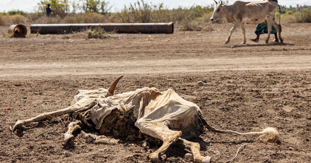 Drought, failed rains, and conflict drive 6.5 million Somalis into hunger; children face acute malnutrition risks. Save Share On the outskirts of Somalia’s southern port city, the land has become an open graveyard for cattle. Some are left where they fell, while others are buried in shallow graves after consecutive failed rainy seasons. For many families here, pastoralists who rely on livestock for milk, meat, and income, animals were everything, but what was once a lifeline of food and income has now become a stark symbol of loss. The impact is not just felt in Kismayo, but across the country, with 6.5 million people forced to skip meals and go hungry every day. Drought and rising costs only pushing the country deeper into crisis. The humanitarian director at Save the Children, Francesca Sangiorgi, says the crisis is being driven by repeated climate shocks that are compounding over time. “We’re seeing multiple rainy seasons that have failed across the country,” she tells Al Jazeera, adding that even when rain arrives, it is often too uneven and too late to restore livelihoods that have already collapsed. What’s the scale of the crisis? The scale of Somalia’s hunger crisis is severe and rapidly worsening. With a third of the population facing severe food insecurity (classified as IPC Phase 3 and above), many households are struggling to get enough food to meet their basic daily requirements (PDF) — and in some cases going without food altogether, leaving them more vulnerable to malnutrition and illnesses such as diarrhoea, measles, and other infections. Of these, more than 2 million people are in the most critical conditions short of famine (IPC Phase 4 or emergency levels), where families are facing extreme shortages and are increasingly forced into displacement in search of basic needs, moving towards already overcrowded aid camps where resources are rapidly dwindling. Children are among the most affected. According to the UN, an estimated 1.8 million children under five in Somalia are at risk of acute malnutrition, putting their survival in immediate danger. Sangiorgi notes that the deterioration has been unfolding rapidly, its effects already evident. “The situation of children across the country is extremely concerning,” she explains. “We’re seeing the spread of child illnesses across the country. Dropout rates are extremely high right now, and they continue to rise because of the drought. We want to make sure that children have a chance at life—access to the health and nutrition services they need, as well as education.” According to Doctors Without Borders, known by its French initials MSF, more than 3.3 million people have been displaced, severely straining the already limited resources and basic services in these communities. What does the crisis look like on the ground? Near Kismayo, one of Somalia’s largest camps for displaced people has formed, sheltering families who have nothing to eat and have travelled from across Jubbaland. One woman describes how her herd has fallen from 200 cattle to just four, ending her very livelihood. Barwaqo Aden, a displaced Jamame resident in Lower Juba, arrived at the camp only recently, but her eight-month-old daughter is already in the local hospital with severe malnutrition due to the lack of resources. Others arrive after exhausting journeys, fleeing areas controlled by the armed group al-Shabab. A displaced resident, Hodhan Mohamed, walked for days and crossed the River Juba by boat before reaching a crowded settlement, unsure what she would find. Like many new arrivals, she now waits for assistance that is limited and uncertain. Sangiorgi explains that secondary displacement – when people who have already been forced from their homes are displaced again – is becoming increasingly frequent. “As services and commodities continue to shrink across the country, the prices of essential goods keep rising as well.” More than 3.8 million Somalis are currently displaced, making up 22 percent of the population. Many have been uprooted multiple times, moving from one settlement to another as aid resources dwindle and access to support becomes more limited. What’s driving the crisis? At its core, the crisis is primarily driven by climate shocks. Somalia has had three consecutive failed rainy seasons in recent years, drying out rivers, wells, and pasturelands. For livestock-dependent communities, the impact has been immediate: animals are dying, and with them, livelihoods are disappearing. As local production collapses, families are forced to buy from markets even as food, fuel, and water prices continue to rise. In rural areas, especially, incomes no longer stretch far enough to meet needs. Insecurity caused by armed conflict adds further strain, displacing communities and limiting access for aid workers in some regions. Beyond Somalia, the global economic crisis linked to the US–Israeli war on Iran has also played a role in constricting supply chains. A UN aid chief told the Reuters news agency in March that these disruptions are compounding costs and weakening the ability to deliver assistance, as humanitarian systems come under growing strain. MSF reported last month that transport costs have risen by up to 50 percent in parts of Somalia, making it harder for people to reach health facilities and increasing the cost of delivering care as fuel prices climb. The organisation also said more than 200 health and nutrition facilities have closed since early 2025 due to sharp funding cuts, leaving critical gaps in already overstretched health services. What does the aid collapse look like? As the need for aid rises, humanitarian funding and response capacities are only shrinking. The UN response plan for Somalia is currently funded at just 20 percent of what is required — with $1.42bn needed but only $288m received. That discrepancy has forced major cuts, reducing the number of people targeted for assistance from 