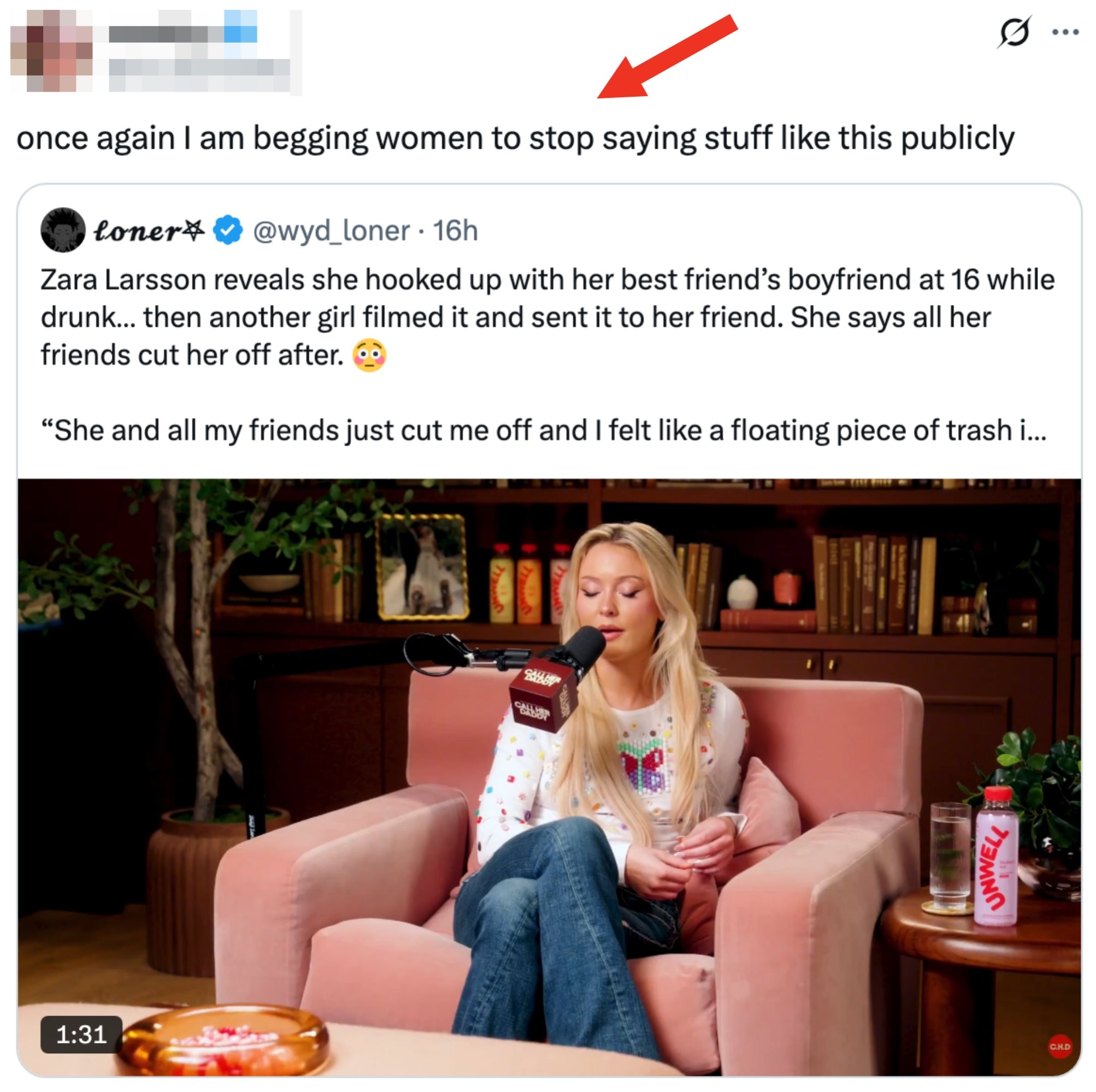“Before I got the chance to tell my friend what happened the next day, she had already got the video sent to her…” “People do dumb shit as teenagers,” wrote someone else on the thread. “This is minor leagues and she got her punishment at the time. Hopefully, we learn from the dumb teenage shit to be better adults.” “I do think it's crucial to watch the whole clip before we fully judge a 16-year-old Zara. She sounded really remorseful about it,” echoed another user, pointing people to the wider context in the conversation. “The friend totally cut her off for years. However, they eventually talked and she doesn't drink anymore because she realized she makes mistakes when drunk. Teens can do messed-up stuff, but I am glad she learned from that moment.”