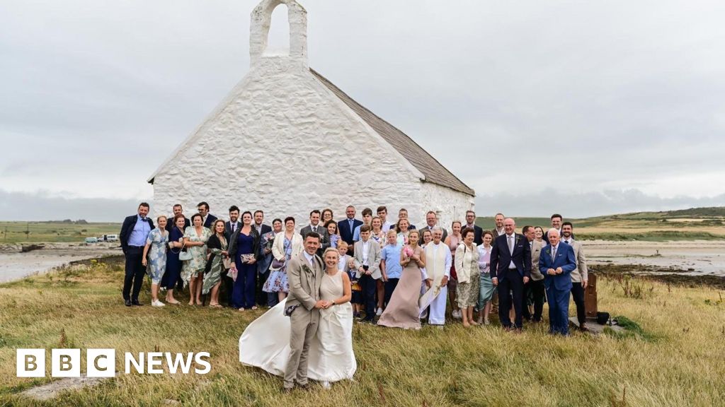 It is a running joke on many wedding days, with guests speculating if a bride will get to the church on time. Reasons for a late-show can range from traffic, to pre-ceremony nerves, or a last-minute visit from an old flame. But at St Cwyfan's Church off Anglesey, the problems are altogether different - with guests wondering if high tide will cut the bride off from her big day completely. Luckily, Alex Spall, 48, was on time, but requested her guests wore trainers not stilettos, so they too made it safely across the sand to the ceremony. "Thankfully when I managed to get hold of the tide book and it had released the tide times for that month, we knew we'd be okay," she said. "We knew that there were a good few hour windows that we could get away with it, we were very relieved. "I think everyone was a bit gobsmacked really, everyone was blown away with the romanticism of it all and how beautiful it all was." Known as "the little church in the sea", its picturesque location on a tiny island off the Welsh mainland make it a popular spot for weddings and christenings. However, its future seemed under threat in the late 19th Century, when erosion meant some of the graves surrounding the church begun falling into the sea. St Cwyfan's dates back to the 12th Century, and is on a tidal island named Cribinau, off the western coast of Anglesey. It was built at the end of a peninsula between two bays, as shown on a map from 1636. A causeway was created so people could access the island and church. But even with this, high tides sometimes made it inaccessible, meaning services were sometimes held at a nearby house. By the late 19th Century, the building was roofless and disused because another place of worship had opened in a more accessible location. Architect Harold Hughes started raising money to build a seawall and restore it. Work was carried out, and in 2006, the weather-stained walls were whitewashed, making it stand out off the coast. Today, the island can only be reached at low tide - and people are advised to check the tide times before journeying over. Alex, from Liverpool, and her husband Jonathan, 43, knew it was where they wanted to wed. They had both visited Rhosneigr, on Anglesey, for more than 40 years on holiday. She added: "Jonathan's mum was born and brought up in Caernarfon, so there was a connection on both sides, so it just seemed to fit." They had also wanted a small and intimate venue, and described the location as "remote and so romantic". However, despite planning their big day for 18 months, they faced a nervous wait to find out if the tide would be low enough to make it over. Their relief at finding out they would be okay meant the bad weather didn't bother them, as she added: "It was blowing a gale. It was pouring down. "But the weather made it a bit Wuthering Heights-esque." However, Alex did have to wear her Converse trainers across before changing into her wedding shoes, and gave strict instructions for friends and family. "I made sure to tell all the female guests, do wear pumps, don't be wearing your stilettos for the wedding," she said. Jeremy Wheeldon has his name added to the Ringers' Chapel, continuing an centuries-old tradition. Some locals have argued the new development - a six-storey block of flats - would not be a suitable replacement for a historic building. The historic buildings have been derelict for decades but are set to become a hub for startups. The Grade II-listed property cannot be viewed internally due to safety concerns. EΓ³in McAlonan ran home to grab his pet and personal belongings as the house filled with smoke.