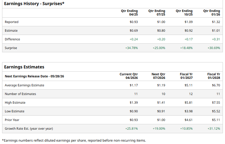 The above button links to Coinbase. Yahoo Finance is not a broker-dealer or investment adviser and does not offer securities or cryptocurrencies for sale or facilitate trading. Coinbase pays us for certain activity generated through this link. Prices displayed are informational. Workday, Inc. (WDAY), with a market cap of $32.5 billion, is an enterprise cloud software company that develops and delivers on-demand applications for financial management, human capital management, analytics and planning to organizations worldwide. The California-based company’s platform helps businesses streamline core functions such as accounting, payroll, workforce management and reporting across industries including technology, healthcare, education and government. The cloud giant is expected to announce its Q1 2027 results in the near term. Ahead of the event, analysts expect WDAY to report a profit of $1.17 per share on a diluted basis, up 25.8% from $0.93 per share in the year-ago quarter. The company beat the consensus estimates in each of the last four quarters. Intel Reports Earnings Later Today, but Thanks to Elon Musk’s Terafab Project, Its Results Might Not Even Matter Should You Buy AMD Stock Before Earnings on May 5? GF Securities Says Yes. Super Micro Computer Stock Plunges on Lost Oracle Contract, but Supply Chain Excesses Could Be the Bigger Problem for SMCI Stop Missing Market Moves: Get the FREE Barchart Brief – your midday dose of stock movers, trending sectors, and actionable trade ideas, delivered right to your inbox. Sign Up Now! For the current year, analysts expect WDAY to report EPS of $5.11, up 10.9% from $4.61 in fiscal 2026. Its EPS is expected to improve 31.1% year over year to $6.70 in fiscal 2028. Workday has struggled to keep pace with the broader market over the past year, declining 26.7% over the past 52 weeks, while the S&P 500 Index ($SPX) advanced 32.2%. The underperformance is even more pronounced against the tech sector, with the State Street Technology Select Sector SPDR ETF (XLK) gaining 57.4% over the same period. On Apr. 20, shares of Workday rose 2.6% in afternoon trading as investors stepped back into beaten-down software names amid a broader “buy-the-dip” rally. The rebound came despite renewed geopolitical uncertainty surrounding U.S.-Iran tensions, with sentiment supported by growing confidence that enterprise software companies like Workday remain structurally resilient and well-positioned for long-term growth. Analysts’ consensus opinion on WDAY is cautiously bullish, with a “Moderate Buy” rating overall. Out of 42 analysts covering the stock, 23 advise a “Strong Buy” rating, three suggest a “Moderate Buy,” and 16 give a “Hold.” WDAY’s average analyst price target is $186.27, indicating a potential upside of 62.4% from the current levels. On the date of publication, Kritika Sarmah did not have (either directly or indirectly) positions in any of the securities mentioned in this article. All information and data in this article is solely for informational purposes. This article was originally published on Barchart.com