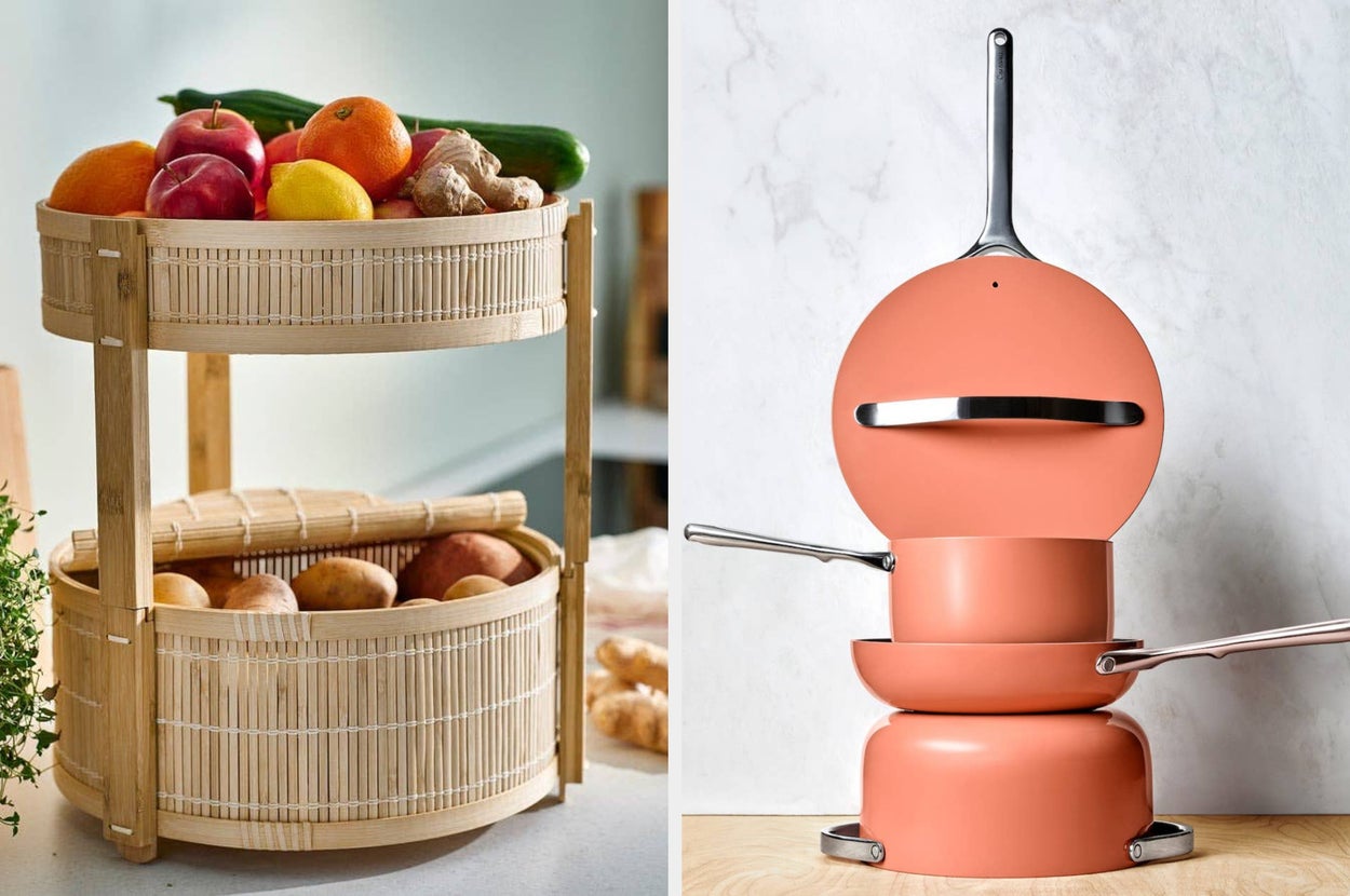 We hope you love our recommendations! While every product is independently chosen by our editors, BuzzFeed and our publishing partners may collect a share of sales or other compensation from the links on this page. You can read more about how our affiliate partnerships work in our Editorial Standards & Ethics Guide. Excuse me, gotta grab my stationery to write a little “thanks” to my air fryer. I personally don't think *anyone* works harder than the items in a kitchen. From a dual-zone air fryer that literally can cook two things at once and a FryAway cooking oil solidifier to a Dawn Platinum Powerwash (that I'm not convinced wasn't crafted by cleaning wizards) to a one-click Nespresso Vertuo Pop+, these items are putting in the EFFORT. It's about time you find out just how great they are, don't ya think? Promising review: "I absolutely love these silicone lids. It is so satisfying to lay it on a glass storage container and lift it up because the seal is so strong. I eat a lot of leftovers, and it is so easy to pop one of these on top of my dinner plate and throw it in the microwave. It drapes down the edges without creating a seal, so it keeps the food from splattering. I do wish that they offered color choices." —Candace Get a set of three from Amazon for $9.49+ (also available in a set of eight). Promising review: "This item was a splurge for me. I’ve been spending more time in the kitchen and have been looking for fun ways to elevate the vibe. I usually hide my oil away, but this is the perfect, convenient way to store it. It looks intentional and is very functional for someone like me who loves skipping the extra step of reaching into the pantry. Also, so far, no issues throwing this guy in the dishwasher." —4lexa Get it from Anthropologie for $108 (available in three colors). Promising review: "I love tulips and especially love this color scheme. I saw this set in a magazine and was thrilled to find it available here. It’s not exactly large, but it’s definitely adorable! So glad I bought it!" —cbs4818 Here's what BuzzFeed Shopping writer Emma Lord says: "I've owned one of these babies and have faithfully used it every week for upward of two years, and especially love it while working from home — it simplifies breakfast because I know no matter what assortment of groceries I'm working with, there are precooked eggs to add some protein to it (I like mine medium-boiled 🍳). If my dinner is boring or seems like it needs a little extra "oomph" to it, I'll throw in an egg from this too. Some reviews note that the alarm on it is a little loud, but the new models have significantly decreased the volume and sing a little song instead!" Promising review: "I saw someone on TikTok with this and gasped! Ordered it right away. I had no idea these things existed. Super easy and convenient and the hard-boiled eggs came out perfectly. I’m testing a batch now without punching a hole in the eggs to see how they come out. Because why not make an easy process even easier?!?! LOL." —Gina Get it from Amazon for $19.99 (available in seven colors). Promising review: "I got this so I don't always have to Google or ask Alexa about conversions. It's really cute, too. I use it a lot, so it's coming in handy more than I thought it would." —Kindle Customer Get it from Amazon for $9.95 (available in black or white and in horizontal or vertical). Psst, as you can see above, this set also comes with a crumb catcher where your stovetop meets your countertop! Promising review: "I've been using the foil ones and while they do the job, they're not so nice to look at. I like that this is black so it matches the original color of the appliances, but more importantly I like that this has a larger surface area to catch the drips that the foil ones never could before. They're also trim to fit, so they get right up into each burner without leaving gaps where drips can burn where it's hardest to clean. Overall recommended." —Michael Get an 8-pack from Amazon for $13.99+ (available in six colors and three sizes). Promising review: "I love this pitcher, it looks exactly as pictured. This is so festive and perfect for fun gatherings." —EDoodles Get it from Anthropologie for $19.60 (originally $28). This colander can expand from 14.5–19.5 inches. It's top-rack dishwasher safe as well! BuzzFeed editor Jenae Sitzes has and loves this product: "I have this colander in the pink color and absolutely love it! I don't leave it out on my sink permanently, but I've hung it right next to my sink using small Command hooks so I can quickly grab it and place it on my sink whenever I need to clean produce or drain pasta. I love being able to leave ingredients on it to drain while I work on other steps of a recipe, and it also leaves enough room in the sink for me to place dirty dishes or wash a pan without the dirty water going onto my clean ingredients. Highly recommend, especially for small kitchens!" Promising review: "I’m obsessed with this. I leave it in my sink always. It makes washing fruits or draining pasta so much easier and has such a simple cleanup. It also adds a nice pop of color to my kitchen. I highly recommend it." —Alyssa Get it from Amazon for $18.99 (available in six colors and in two-packs). Promising reviews: "I love this product! I use it every day to slice or cut vegetables or fruit and then rinse them in the colander. Versatile and fits over my sink perfectly." —Jeff Wedgwood Get it from Amazon for $24.99+ (available in five colors). Promising review: "Thick good quality material, has weight to it so it won’t slide around, I love that it has a slant to it so the water slides off AND it slips over the edge of the sink so the water doesn’t collect underneath." —shaw Get it from Amazon for $17.49+ (available in two sizes and five colors). The top layer is made of absorbent PU leather, so you can easily rinse or wipe it clean! It also has an anti-skid rubber backing to prevent sl