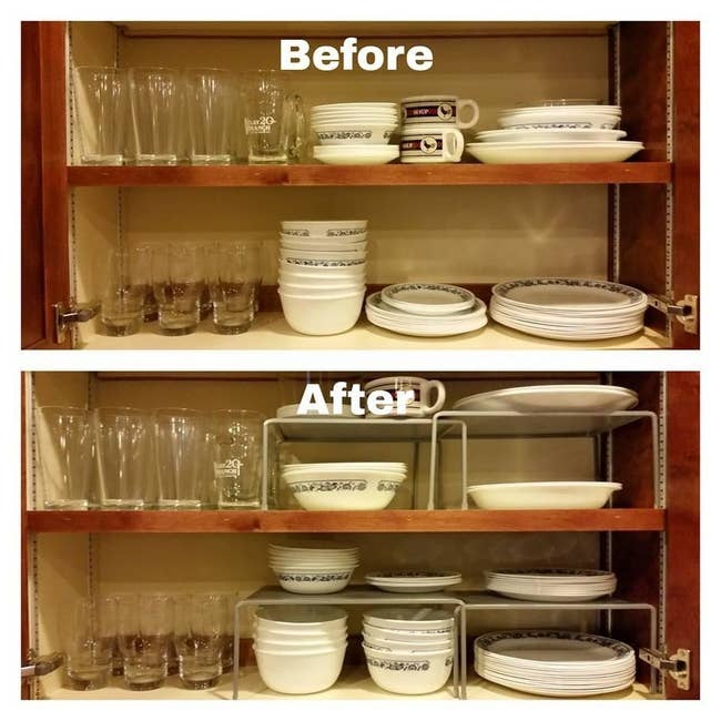We hope you love our recommendations! While every product is independently chosen by our editors, BuzzFeed and our publishing partners may collect a share of sales or other compensation from the links on this page. You can read more about how our affiliate partnerships work in our Editorial Standards & Ethics Guide. Your leggings are hogging all your drawer space. Home DIY can be intimidating, but it doesn't have to be! Take it from someone who's done many home upgrades. Sometimes you just need a better way to organize your kitchen utensil drawer, not build a bench. You can pull off most of these storage upgrades that'll feel like pure magic without looking for your toolbox or hammer. OK, some *do* require a screwdriver. But a screwdriver has less room for error (and ouches) than a hammer. Promising review: "I bought this product in a two-pack for my T-shirts because I hate folding and putting laundry away, and thought it would be a more convenient way for me to keep my clothes organized, and Wow! When I saw how durable and well-made they were, and how much space they saved, and how easy they were to use, I bought more! They were also a great value for the money, and I was able to just walk into my closet and see all my clothes, so they were all visible as soon as I opened my closet, no more searching through drawers. The next two packs I bought, I even used to hang my hoodies; these things are super durable and sturdy. I highly recommend these little darlings for anyone trying to get organized." —Sissy Get a two-pack from Amazon for $12.99+ (available in three colors as well as individually and in packs of four). Promising review: "It has doubled my closet space in my apartment where I can’t make any damage in terms of adding another permanent shelf — so this has been a perfect solution. It was easy to assemble and is sturdy. I’ve had it for a couple of weeks now with no issue. Your closet has to be pretty high for this to work or else your shirts above are going to get caught on the hangers below and for my case, some of my shirts are dragging on the floor — just keep this in mind when you’re thinking about purchasing." —Alex Promising review: "Great product for a great price. Very sturdy, but lightweight and small — under my bathroom sink is *very* small, and the metal frame is thin enough that it doesn't take up much space, and of course it allows me to utilize the empty vertical space instead of shoving things all the way to the back wall. I might rearrange the shelves, but it's just held with screws on each end so that's easy enough to do-comes with two supports for two shelves, but you can choose from four heights/positions. 👍🏻 Might need to order a second for under the kitchen sink..." —Jennifer Mowry FYI, it installs like a regular outlet cover. Of course except with the wonderful shelf. Can also be installed so the shelf is below the outlet. Promising review: "I absolutely love this thing! I have much less clutter on my sink thanks to this. If there's anyone not sure if it will fit due to an object, all you need is 1.25 inches of space between the edge of your existing outlet plate and the piece of furniture. I have a GFCI with a standard wall plate." —Amazon Customer Get it from Amazon for $13.99+ (available in three colors). Promising review: "The expandable shelves I got doubled the area so usefully in my tiny kitchen cabinets! Love them...and will enjoy them for years to come!" —Diana G-B Get it from Amazon for $19.87 (available in bronze and silver). Promising review: "I will spare you the horrific 'before' picture of the complete nightmare that was my closet floor. Just imagine a dusty mess with shoes thrown all over each other in a sad attempt at giving some appearance of order, and you will have a good idea of why buying this shoe organizer was one of the best ideas I've had this year. The floor now looks so neat and tidy I can't believe my eyes every time I open my closet doors." —Veronica, just an average reader, you know? "I really like these for my sports shoes. Doubles my space, and your shoes can air out! Perfect!" —Lewlu Get a set of 10 from Amazon for $19.99+ (also available in packs of 20 and 40). Yep, you're looking at my shower! I upgraded from a corner tension rod caddy and never want to go back. The mesh pockets drain water so your liner won't get all icky. And they make it easy to tell the difference between the minimalist packaging for your face wash and shave cream when it's way too early in the morning. Read my full review of Maytex Pockets Shower Curtain Liner (#2) to learn more about why I'm in love with an object that can't love me back. Promising review: "I love this shower curtain for my small bathroom. It literally doubled my storage space. I use it facing outwards and with an inner shower curtain, which makes cleaning easier. Really, such a useful product for small bathrooms." —Emk Promising review: "Using this in our pantry to hold our many tumblers! Holds everything perfectly and will be getting another for all our plastic ones at some point!" —Megan Walters Get it from Amazon for $14.99+ (available in two sizes and four colors). Homelux Theory is a small biz specializing in home solutions. Promising review: "Very pleased with product quality. Fits perfectly over the linen closet door, which almost doubles the storage. Recommended!" —Cindy Reidland Get it from Amazon for $19.95+ (available in six colors). Promising review: "This shelf doubled my storage space and makes it easy to reach everything without digging through the whole cabinet." —JBird Get it from Amazon for $16.99+ (available in 10 colors). Check out how they work on TikTok! And PS: Wonder Hanger is a small biz! Promising review: "I wish I had taken the time to take a before and after pic because I have so much more room in there now than I did before. I found the cutest tops in there that I had completely forgotten about because my clothes we
