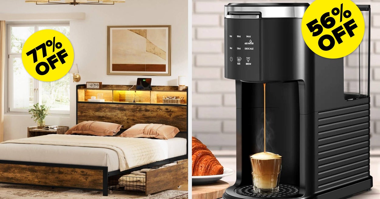 We hope you love our recommendations! While every product is independently chosen by our editors, BuzzFeed and our publishing partners may collect a share of sales or other compensation from the links on this page. You can read more about how our affiliate partnerships work in our Editorial Standards & Ethics Guide. Time to grab the upgrades you’ve been thinking about all year. Promising review: "I've had the same desk in white for more than a year and I absolutely love it! Now my husband is looking for a new desk and I recommended this one. We got it in black for him to fit his setup more, and it looks so good! I accidentally ordered the shorter one than I have but he was just excited to use it so he said it was okay. I recommend this desk to whoever sees me using it and I would recommend it over and over." —Hazel Price: $85.99+ (originally $350+; available in four sizes and four colors) Promising review: "I love the bright orange color. Well made. Heavy enough to prevent blowing away in high winds. I assembled the chair and ottoman in an hour. I highly recommend this product. The chair is foldable and that is a nice feature for storage." —Anonymous Price: $359.96+ (originally $1,076+; available in 14 colors) Promising review: "Perfect! Arrived within few days, fairly simple to put together once we got going. Most importantly it has made our front area much more organized, no more shoes everywhere. We have the option to place boards in so that it adjust to bigger shoes if needed. Only downside is I wish I would have purchased it sooner!" —Melissa Price: $93.99+ (originally $199.99; available in three colors) Promising review: "This was super easy to put together and the LED light in the headboard is so cool! It comes with a remote and you can change the pattern in which the colors on the LED is displayed!" —Anonymous Price: $269.99+ (originally $899.99+; available in sizes full/double–king and three colors) Promising review: "This large umbrella covered my entire parameter of my patio area. It’s well made, constructed well and easy to maneuver." —Chrystal Price: $77.99+ (originally $159+; available in 10 on-sale colors) Promising review: "The Perdue convertible couch has a clean, modern look that works well in a thoughtfully designed space. The beige fabric is versatile and neutral, making it easy to style with a range of palettes and textures. The overall silhouette feels tailored and streamlined rather than oversized or casual. Functionally, it does exactly what it’s meant to do. The convertible feature is easy to use and makes this a practical option for accommodating guests without sacrificing aesthetics. The cushions are firm, which gives the sofa a structured, intentional feel and good support. While it’s not a sink-in lounge sofa, it maintains its shape well and looks polished. Assembly was straightforward, and the couch feels solid and stable once in place. Overall, this is a great choice if you’re looking for a sofa that prioritizes clean lines, structure, and everyday functionality with a modern design sensibility." —Donna Price: $274.99+ (originally $829.99+; available in eight colors) Promising review: "Cute, big, personality-filled pillow to add character to a covered outdoor area." —Rebekah Price: $34.99+ (originally $67.50; available in five colors) Promising review: "Bought this for our first floor bathroom. Sturdy and classic. Looks beautiful. Love it." —Janet Price: $63.99+ (originally $127.89; available in three colors) Promising review: "Item arrived on time and was well-packaged — noting the one long box is *really* heavy, recommended two-person job to safely move it before unpacking. All parts and pieces were clearly noted for the assembly, and it took my handy honey-do a little over an hour to assemble. The finished result is really nice and looks as expected from the photos — color, finish and functionality. It feels very sturdy and solid and looks like it will stand-up well to regular use. The interior is quite spacious and the style and dimensions fit our dining room perfectly. Would happily purchase other items in this product line." —Dian Price: $202.99+ (originally $399.99+; available in two colors) Promising reviews: "I love these chairs! They are comfortable, lightweight yet very sturdy. Being able to stack them will make it so much easier to power wash and clean under the table. I like them so much. I’m ordering another set. I love, especially the way the water runs right through the chairs. You won’t be disappointed!" —Diane "Great chairs, I’ve had them several years very, they're sturdy and still look new." —Linda Price: $239+ (originally $580; available in eight colors) Price: $137.99+ (originally $202.99+; available in three colors) Promising review: "Best dog bed I’ve purchased. Love that the cover can be washed. The memory foam is so comfortable." —Tammy Price: $57.99+ (originally $119.99+; available in two on-sale sizes and four colors) Promising review: "This chair is absolutely beautiful! The fabric is very high quality and loved that I did not have to assemble! Looks gorgeous in my coastal elegant decor home!" —Jennifer Price: $365.99+ (originally $699; available in 11 colors) Promising review: "Perfect mattress! So great we’ve ordered it twice! Perfect for our kids and so comfy for us to lay with them! I love getting to take naps with them on the weekends :)" —Lauren Price: $107.99+ (originally $199.99+; available in sizes twin–California king and also four other thicknesses) Promising reviews: "Very cute rug that I’ve had for almost 4 years. It survived two apartments and now it’s at our first house, still holding up great." —Amy "I have this rug in my sunroom porch and love it. Have gotten many compliments and it updated the look of the room in a very good way. Colorful and durable!" —Heidi Price: $30.99+ (originally $48+; available in 31 sizes and three colors) Promising review: