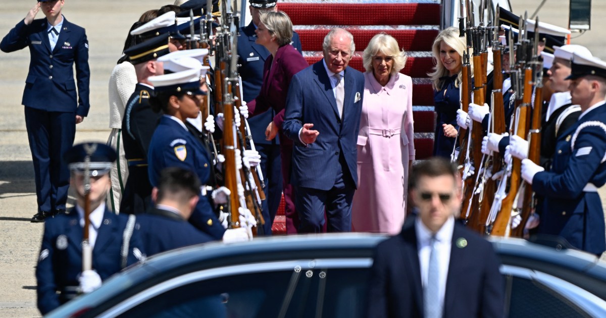 The British monarch’s US visit underscores shared history amid strained ties and tensions over the Iran conflict. Save Share Britain’s King Charles and Queen Camilla have arrived in the United States for a four-day trip, a tour that has taken on even greater prominence after the White House Correspondents’ Association dinner shooting and amid acrimony between the close allies. The state visit on Monday afternoon, by far the most high-profile and consequential of Charles’s reign, marks the 250th anniversary of the US Declaration of Independence from British rule, and is the first visit to the country by a British monarch for two decades. Charles and Camilla touched down at Joint Base Andrews around 2:30pm (18:30 GMT), when they were greeted by diplomatic, state, and federal officials, as well as senior members of the British embassy, and accepted flowers from the children of British military families stationed in the US. The king, sporting a navy suit, and the queen, wearing a pink dress, stood on the tarmac while a military band played the British and US national anthems, before they headed to the White House for a private meeting with self-proclaimed royal fan President Donald Trump. The week’s schedule also includes an address to the US Congress, a lavish state dinner at the White House, and a stop in New York City. The long-planned visit has become enmeshed in a political spat between the two countries over the US-Israel war on Iran, which led Trump to voice deep displeasure with the British government for failing to support the offensive. The shooting on Saturday at the White House Correspondents’ Association dinner in Washington, where US officials have said the president and members of his administration were the likely targets, has cast a further pall over the visit. Buckingham Palace said on Sunday that the king “is greatly relieved to hear that the president, first lady and all guests have been unharmed”. After a security review, the palace said the trip “will proceed as planned”. On arriving in Washington, the king and queen are scheduled to have a private tea with the president, an unabashed lover of the British royal family who regularly describes Charles as a “great man”, and his wife, First Lady Melania Trump. The 77-year-old king, who is still undergoing cancer treatment that began in February 2024, will address Congress the next day – just the second time a British monarch has done so. The royals will then head on to New York City, where they will commemorate those killed in the September 11, 2001, attacks ahead of the 25th anniversary, while the queen will also mark the centenary of children’s stories featuring Winnie-the-Pooh. The US trip concludes in Virginia with the king meeting those involved in conservation work, a nod to his half-century of environmental campaigning. The government of British Prime Minister Keir Starmer is hoping the visit will shore up the future of the two allies’ “special relationship”, which is now at its lowest point since the Suez Crisis in 1956. Britain’s ambassador to the US, Christian Turner, said the visit would underscore the shared history, sacrifice and common values between the two countries, adding that the approach would be a very British one: “Keep calm, carry on.” While Trump has eased his criticism of Britain in recent days over its response to the Iran war, an internal Pentagon email set out how the US could review its position on Britain’s claim to the Falkland Islands as punishment for its lack of support, further straining ties. “President Trump has always had great respect for King Charles, and their relationship was further strengthened by the president’s historic visit to the United Kingdom last year,” White House spokesperson Anna Kelly told The Associated Press. “The president looks forward to a special visit … which will include a beautiful state dinner and multiple events throughout the week.” Trump, meanwhile, told the BBC that the king’s visit could “absolutely” help repair the transatlantic relationship. One issue off the table during the visit is the scandal over convicted US sex offender Jeffrey Epstein. Royal sources have said it was not possible for the king and queen to meet any victims of Epstein during the tour, as some have requested, to avoid impacting any potential criminal cases. Charles’s brother, Andrew Mountbatten-Windsor, whose reputation and royal standing have been destroyed over his links to the late Epstein, is currently facing police inquiries over his connections. The former Prince Andrew has denied any wrongdoing.