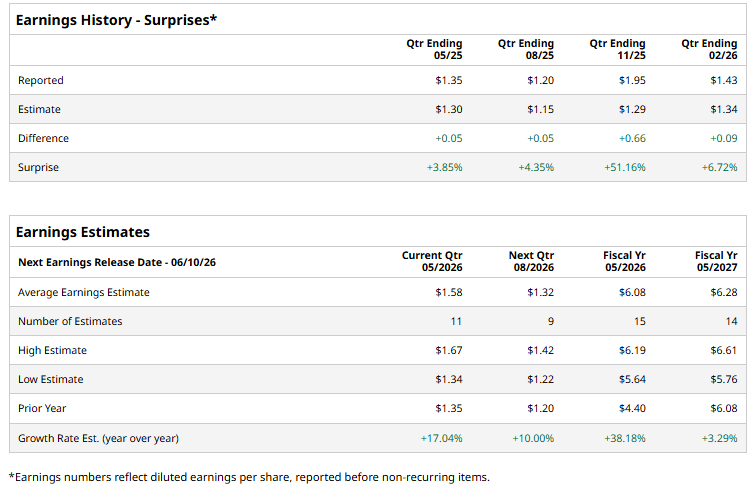 The above button links to Coinbase. Yahoo Finance is not a broker-dealer or investment adviser and does not offer securities or cryptocurrencies for sale or facilitate trading. Coinbase pays us for certain activity generated through this link. Prices displayed are informational. Valued at a market cap of $498.4 billion, Oracle Corporation (ORCL) is a global technology company best known for its enterprise software, database systems, and rapidly expanding cloud computing platform. Founded in 1977 and headquartered in Austin, Texas, Oracle has evolved from a database pioneer into a full-stack cloud provider competing with hyperscalers. The software titan is scheduled to announce its fiscal 2026 Q4 earnings in the near future. Ahead of this event, analysts expect this software company to report a profit of $1.58 per share, up 17% from $1.35 per share in the year-ago quarter. The company has surpassed Wall Street’s bottom-line estimates in each of the last four quarters. Mega-Cap Earnings, FOMC and Other Key Things to Watch this Week Spirit Airlines Stock Is Ready for Takeoff Thanks to Trump, but Can This Plane Stay in the Sky? Intel Could Still Be Undervalued Based on Strong Free Cash Flow Markets move fast. Keep up by reading our FREE midday Barchart Brief newsletter for exclusive charts, analysis, and headlines. For the current fiscal year, ending in May, analysts expect ORCL to report a profit of $6.08 per share, up 38.2% from $4.40 per share in fiscal 2025. Furthermore, its EPS is expected to grow 3.3% year over year to $6.28 in fiscal 2027. ORCL has surged 26% over the past 52 weeks, lagging behind both the S&P 500 Index's ($SPX) 30.6% return and the State Street Technology Select Sector SPDR ETF’s (XLK) 56% uptick over the same time period. On Apr. 24, Oracle gained attention after Wedbush Securities initiated coverage with an “Outperform” rating, with analyst Dan Ives setting a $225 price target, implying 30% upside. Ives argues the market is misreading Oracle’s heavy capital spending as risky, when it is actually a strategic investment to transform the company into a core AI infrastructure provider. Wall Street analysts are moderately optimistic about ORCL’s stock, with an overall "Strong Buy" rating. Among 43 analysts covering the stock, 33 recommend "Strong Buy," one indicates a "Moderate Buy,” eight suggest "Hold,” and one advises a “Strong Sell.” The average price target for ORCL is $250.90, indicating a 44.8% potential upside from the current price levels. On the date of publication, Kritika Sarmah did not have (either directly or indirectly) positions in any of the securities mentioned in this article. All information and data in this article is solely for informational purposes. This article was originally published on Barchart.com