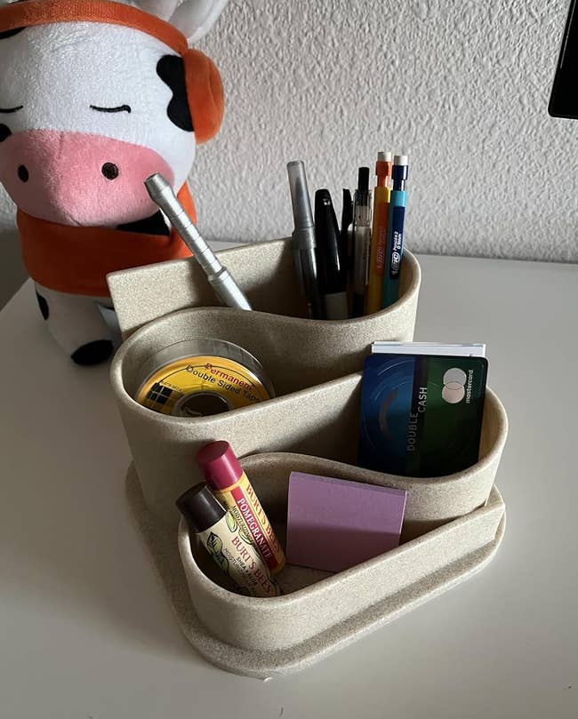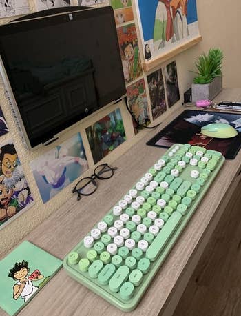 We hope you love our recommendations! While every product is independently chosen by our editors, BuzzFeed and our publishing partners may collect a share of sales or other compensation from the links on this page. You can read more about how our affiliate partnerships work in our Editorial Standards & Ethics Guide. You can’t control your manager’s outbursts, but you can control how cutesy your desk is (little wins, little wins). As a shopping editor, I love finding new problem-solving products, zero waste swaps, and home organization hacks. The set includes a wireless keyboard and a wireless mouse with a USB receiver. Pick up some AA batteries — both will need them! Promising review: "Every time I walk into my red office and see this beautiful keyboard, it makes me happy. It looks just like it does in the photo. It's such a jolt of color, and with its cool circular retro buttons, it's just a pleasure to use. If you need a pick-me-up (and who doesn't this year?), I can't recommend this highly enough." —CA-girl Get it from Amazon for $31.44+ (available in 12 styles). Promising review: "Very well made and sturdy, and it looks quite stylish. I was just looking for something simple to keep the clutter on my desk organized, but this is way nicer than I expected." —S Get it from Amazon for $19.99 (also available in black). iJoy is a small business selling a variety of tech accessories, speakers, and headphones. Promising review: "I rarely write a review (this is the second in the past few years). One of the best purchases in a long time. Nice design and very practical. It solves all of my problems as it can go any direction. It's worth every penny. I turned around and bought two more. I am about to buy my fourth one. Love this!" —Pond P. Get it from Amazon for $21.99 (available in three colors). Promising review: "A must-buy product for your messy home or office. Exactly what I was looking for to help save space and hide my cable cords." —Andrew Olson Read more about how an ergonomic mouse can help prevent carpal tunnel at Cleveland Clinic. Promising review: "The design is gorgeous and so comfy that I even take it when I travel for business. This has relieved wrist pain from working on the computer every day." —Bianka P Gonzalez G Get it from Amazon for $24.99 (available in 26 patterns). Promising review: "I LOVE this product! I live off lists every day at work, and this keeps me super organized! I have my daily list, top three priorities, things I need to remember for the next day, and miscellaneous notes all on the same page!" —Ldsappy Get it from Amazon for $6.79+ (available in 33 colors/styles). Promising review: "I have procrastinated in writing this review and am actually happy to say that after a year, the product is continuing to stay strong. The adhesion is as strong as it was on day one, and this product continues to meet and exceed expectations. I have noticed significantly less eye strain. If I were needing computer monitor backlighting again, I wouldn't hesitate to repurchase." —college_engineer Get it from Amazon for $16.99+ (available in seven sizes). The velour cover zips off for easy cleaning in the washing machine. Promising review: "I've purchased similar items in the past that visually looked like this but were stiff and rigid. This is amazing. Totally eased my back pain from my quarantine-at-home desk job. Highly recommend." —Bellarosa555 Get it from Amazon for $41.36+ (available in seven colors). Promising review: "Got this for my office desk. It definitely stands out, and the older ladies at my work love it! It works well as a seat cushion, as my office chair is so thin I can feel the metal and plastic bits when sitting. With the cushion, it's super soft and comfortable!" —Jane Get it from Amazon for $24.99+ (available in two sizes and six colors). Reviewers suggest turning the heat down from high to medium once the drink gets down to about the halfway point so it stays a comfortable temperature! BuzzFeed editor Jenae Sitzes wishes she had bought it sooner: "After seeing this coffee warmer all over BuzzFeed Shopping and even gifting my dad one for Christmas, I finally decided to buy one for myself. Based on all the reviews, I was pretty confident I'd soon be kicking myself for not getting it sooner, and that proved to be true: This thing not only looks good but works great for keeping my coffee warm all day long. (Because yes, I'm one of those people who'll sip on coffee until 5 p.m., all right!!) I was kind of worried it'd be too small for some of my larger mugs, but the center plate is bigger than expected and accommodated every mug in my (very eclectic) collection perfectly. I can confirm that flat-bottomed mugs are the best option for this warmer as they do stay hotter, but it still keeps my concave-bottom mugs warm enough for my taste. Also, I looove how sleek the white version looks on my white desk, and the auto-shutoff function is a nice safety feature for an absent-minded person." Get it from Amazon for $19.79+ (available in 11 styles). The whiteboard also comes with a dry-erase marker, an accessory channel (to hold the marker), and a storage drawer. Promising review: "I got this as a replacement for using sticky notes and it's amazing. Most of the time, I need to take a quick note for work or make a checklist, and this is perfect for that! It comes in cute colors. I love the marker storage tray on the side. I've recommended it to all of my coworkers!" —Emily Get it from Amazon for $29.76+ (available in five styles). 1801 & Co. is a Minnesota-based Etsy shop established in 2016 that specializes in family wall calendars, chore charts, wedding signs, and more. Promising review: "I love it! I got it so fast after ordering, and it’s perfect. I love the sleek design for my small home office space. I can’t function at work without a dry erase board but couldn’t find any that would look nice in my office space, which is in the corner of 