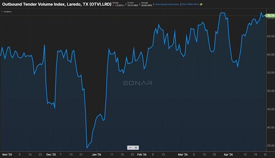 The above button links to Coinbase. Yahoo Finance is not a broker-dealer or investment adviser and does not offer securities or cryptocurrencies for sale or facilitate trading. Coinbase pays us for certain activity generated through this link. Prices displayed are informational. The U.S.-Mexico trucking market is tightening in early 2026, but not in the way traditional freight indicators suggest, according to Uber Freight. Instead of a demand-driven cycle, capacity constraints tied to security, compliance and driver qualification are reshaping how freight moves across the border — creating what one executive described as “phantom capacity.” “We’ve basically seen in Q1 … a tightening in supply. It’s almost like a supply-driven market,” Zeid Houssami, senior vice president overseeing Uber Freight’s cross-border business, told FreightWaves in an interview. Houssami said underlying demand has remained relatively stable, but usable capacity has shrunk due to stricter security requirements and operational concentration along key industrial corridors in Mexico. San Francisco-based Uber Technologies (NYSE: UBER) operates three platforms: Uber (ride-hailing), Uber Freight (logistics), and Uber Eats (food and goods delivery). While headline metrics such as spot rates and tender rejections may signal a loose market, Houssami said those indicators are increasingly misleading. “Demand hasn’t really shifted. It’s really been more supply constraints, due to security primarily, and then also just a consolidation of volumes on specific corridors,” he said. That dynamic is creating a growing gap between theoretical capacity and freight that can actually move reliably — particularly in cross-border lanes requiring vetted carriers and secure transit. The result: lower tender acceptance rates and increased reliance on the spot market, even before a full pricing upcycle takes hold. SONAR’s Outbound Tender Volume Index (OTVI.KRD) shows tender volumes remaining relatively stable to slightly elevated in early 2026, reflecting resilient cross-border demand even as broader freight markets show mixed signals. However, rising volatility in tender acceptance — tied to compliance constraints and carrier selectivity — suggests that underlying capacity is tighter than volumes alone indicate. The divergence between steady OTVI and softer acceptance rates reinforces the “phantom capacity” narrative, where freight is available but harder to cover consistently. One of the biggest constraints is not a lack of drivers overall, but a shortage of drivers who meet tightening compliance and security standards. “There’s not really a driver shortage — it’s more so it’s a compliant driver shortage,” Houssami said. This distinction is critical for cross-border freight, where security protocols, documentation requirements and carrier vetting are increasingly limiting which capacity is actually usable. The impact is most pronounced on northbound freight into the U.S., where demand significantly outweighs southbound flows. “Northbound demand is two to three times more than it is on the southbound side,” Houssami said. That imbalance is forcing carriers to quickly reposition equipment back into Mexico, tightening available capacity for U.S.-bound shipments. Facing these constraints, shippers are changing procurement strategies — not necessarily because demand is surging, but to prepare for future disruptions. “I think it’s probably more of the latter,” Houssami said of early procurement activity, noting that shippers are acting defensively rather than reacting to a demand rebound. Uber Freight has seen a surge in mini-bids and short-term procurement events as companies look to diversify carrier networks and secure reliable capacity ahead of potential shocks tied to tariffs, fuel costs and policy changes. Houssami said the industry is moving away from heavy reliance on long-term contracts toward a hybrid approach that incorporates more spot market flexibility. At the same time, geographic concentration of manufacturing in Mexico — particularly in automotive and industrial hubs — is limiting how much shippers can diversify their networks. “It is a tough problem to solve … when the manufacturers are concentrated in a specific location,” Houssami said. That concentration is reinforcing capacity bottlenecks along key corridors, particularly those tied to high-value, security-sensitive freight. Looking ahead, Houssami said the biggest wildcard for cross-border freight remains the upcoming review of the U.S.-Mexico-Canada Agreement. Uncertainty around whether the trade pact will be extended or renegotiated is already influencing shipper behavior and nearshoring investment decisions. “I think it’s definitely slowed down nearshoring investment … everybody’s in a little bit of a holding pattern until July,” he said. If the agreement is extended, it could provide much-needed stability for cross-border supply chains. But prolonged negotiations or uncertainty could inject additional volatility into freight markets. In the near term, Houssami said shippers should focus on proactive planning and building more resilient carrier networks. “I think first and foremost, planning, demand forecasting … is paramount,” he said. He added that diversifying carrier relationships — particularly with compliant, security-ready providers — will be critical as capacity becomes more constrained and fragmented. With compliance, security and policy increasingly shaping freight flows, the U.S.-Mexico trucking market is entering a phase where access to reliable capacity may matter more than price alone. The post Phantom capacity tightens US-Mexico trucking market, Uber Freight says appeared first on FreightWaves.