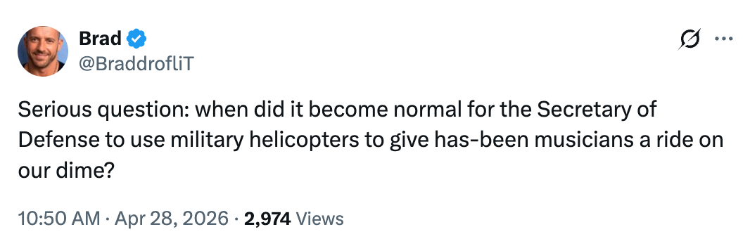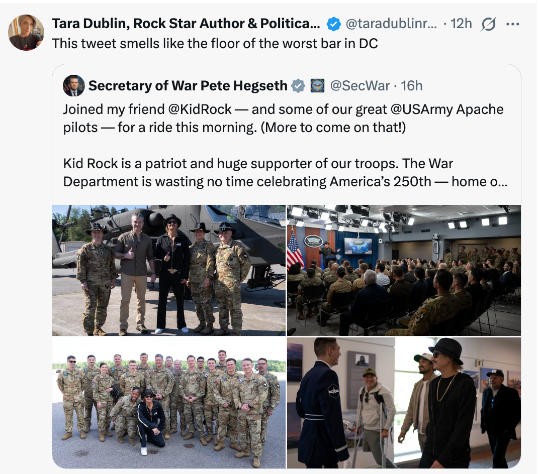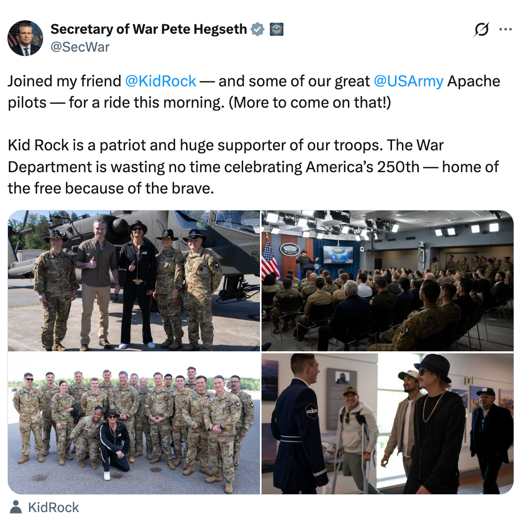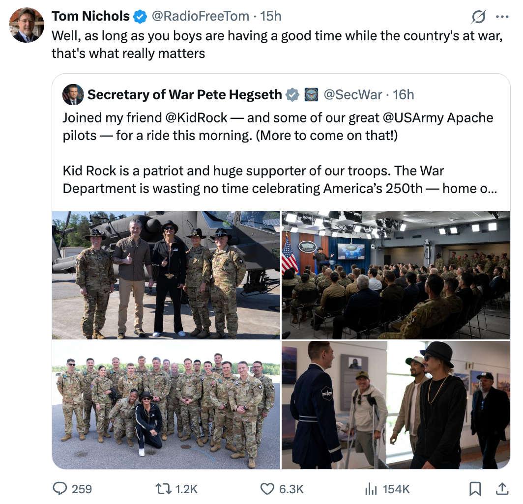 “It’s getting more difficult each day to tell what’s real and what’s parody.” Note: I can't find anywhere that Kid Rock discussed the Strait of Hormuz, but then again, would you even be surprised?