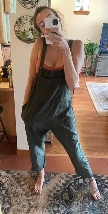 "I have already worn this little suit a bunch. For traveling, it's perfect; the loose straps allow you to go to the LR in a hurry, just pull your arms in and drop 'em! But it's also lightweight, doesn't wrinkle a ton, but is a linen look anyway, so a bit of wrinkle doesn't matter. It's easy to layer with a warm long sleeve if it's cool, or a cute cardigan if it's cold, and with a simple tank top or over a bathing suit top, it would be the top for getting you into 'no shirt, no service' spots. It could even take you from beach babe during the day to Ocean Blvd cocktails on the roof by changing out your top. It's a staple. Get one, or three." —Sarah